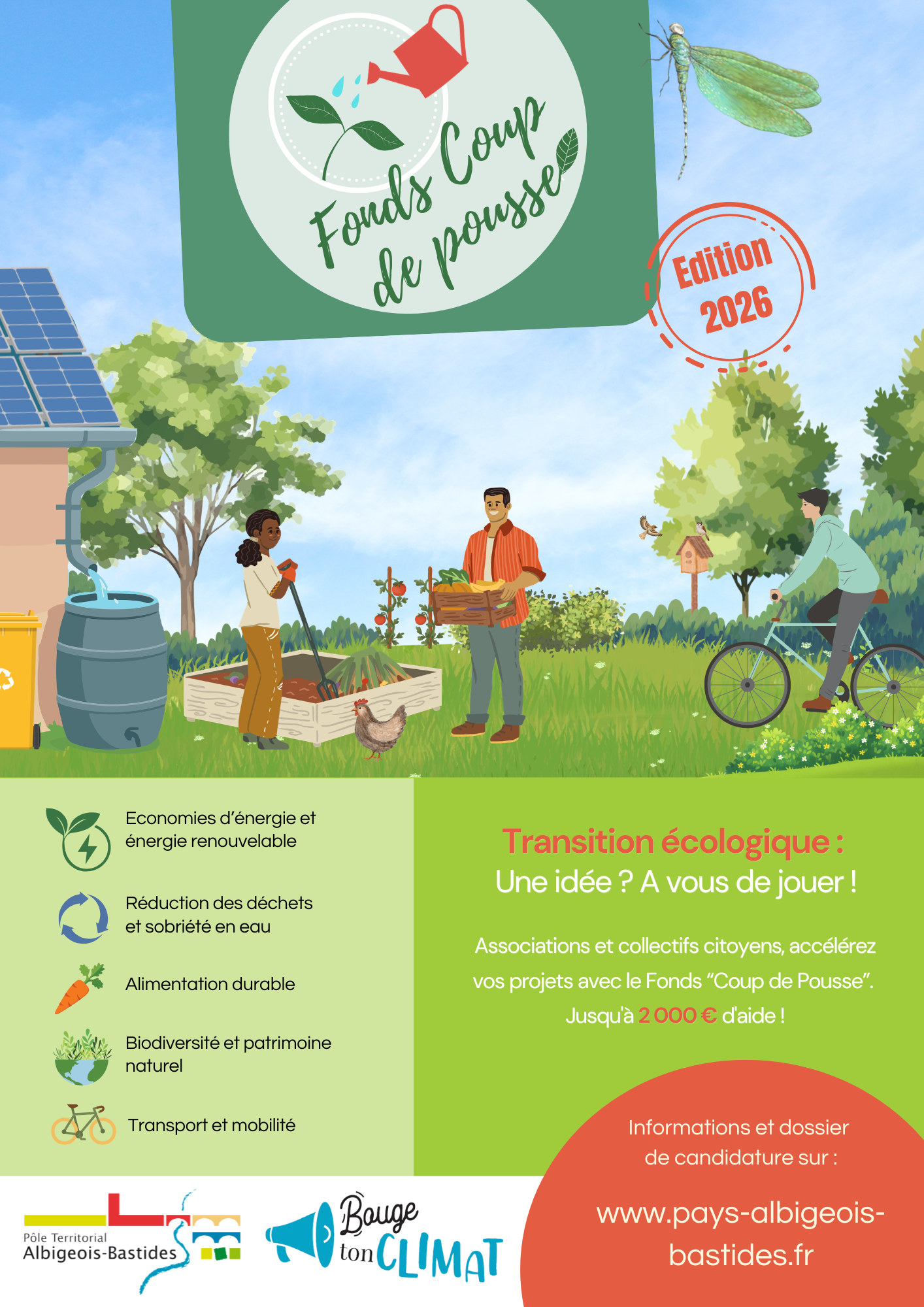 Parce que la transition écologique se construit ensemble, le Pôle Territorial de l’Albigeois et des Bastides, avec le réseau de bénévoles « Bouge Ton Climat », soutient les initiatives citoyennes locales au travers du fonds « Coup de Pousse ».