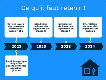 A Saint-Cirgue, la visite a porté sur la mairie, la salle des fêtes et les logements communaux. En discutant de l’usage de chacun des bâtiments, il est apparu plus pertinent de se concentrer sur la rénovation énergétique du logement pour répondre aux obligations à venir d’atteinte d’une certaine performance énergétique pour une mise en location (cf schéma ci-dessous - plus de détails ici https://www.anil.org/parole-expert-logement-proprietaire-passoire-thermique/). Lors de ces visites d’autres sujets peuvent être abordés comme les désordres et pathologies du bâtiment, la question de la ventilation, les modes de chauffage, la production ou le recours aux énergies renouvelables…