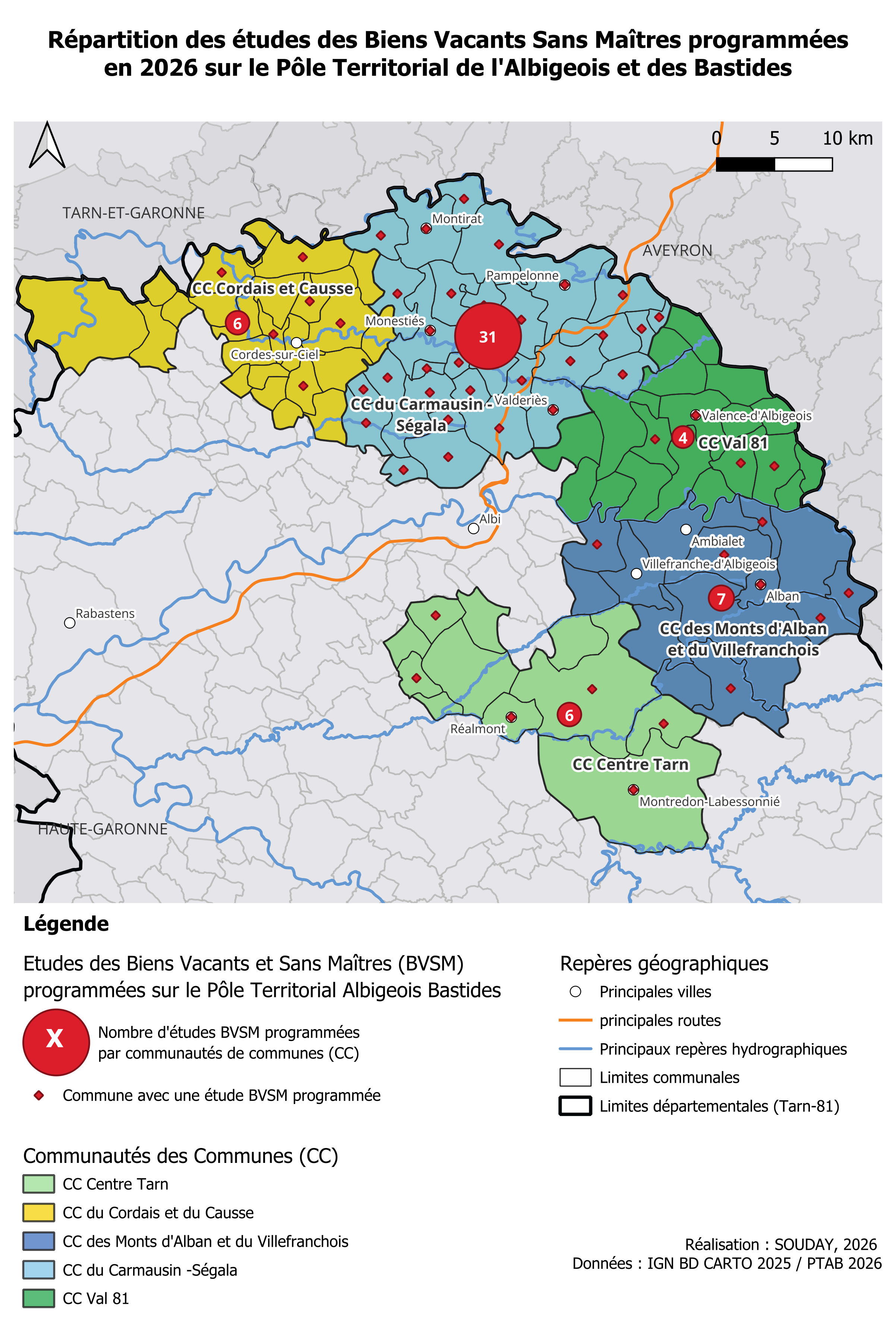 Actuellement, 54 communes du territoire ont d'ores et déjà décidé de réaliser une étude sur leur territoire en 2026. Vous trouverez ci-joint une carte montrant la localisation des études BVSM programmées en 2026.